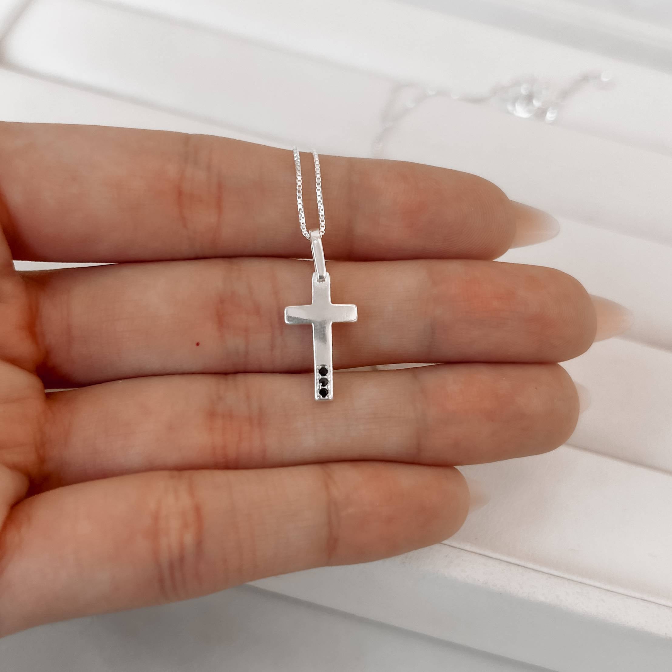 Colar pingente cruz com zircônias ônix