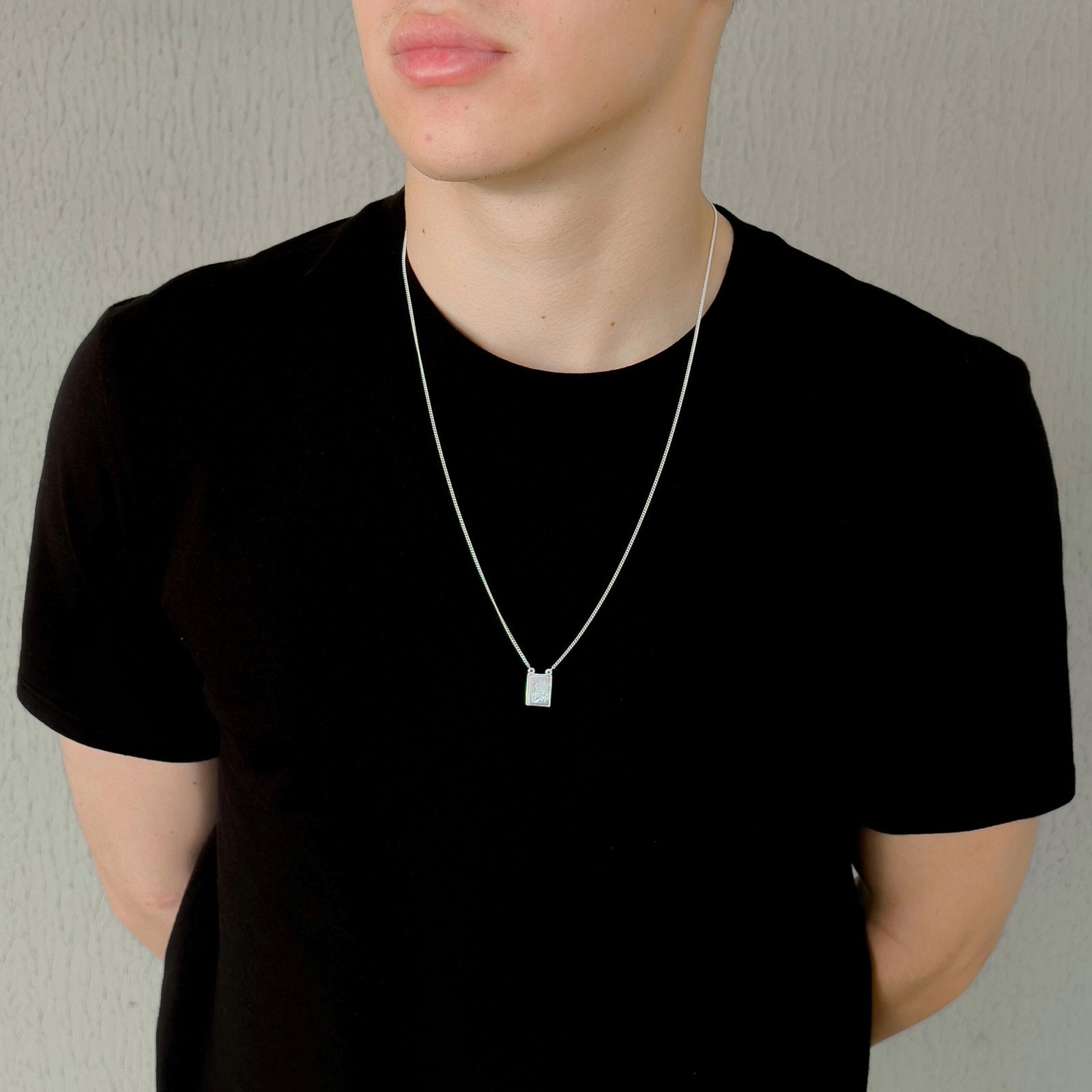 Escapulário madrepérola e pedra ônix 12mm 60cm